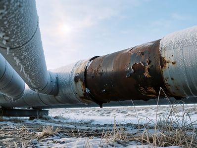 Above-grade pipelines operating in cold environments are exposed to fluctuating temperatures, moisture accumulation, and coating stresses that can accelerate localized corrosion. Severe corrosion may be observed during integrity assessments, particularly on sections of pipeline adjacent to weld seams.
