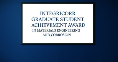 Integricorr is proud to support the next generation of professionals through the Graduate Student Achievement Award in Materials Engineering and Corrosion. This $500 CAD award will be presented to one outstanding graduate student conducting research in the field of materials engineering with a focus on corrosion.